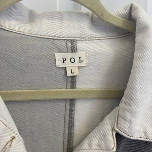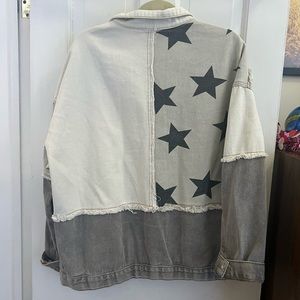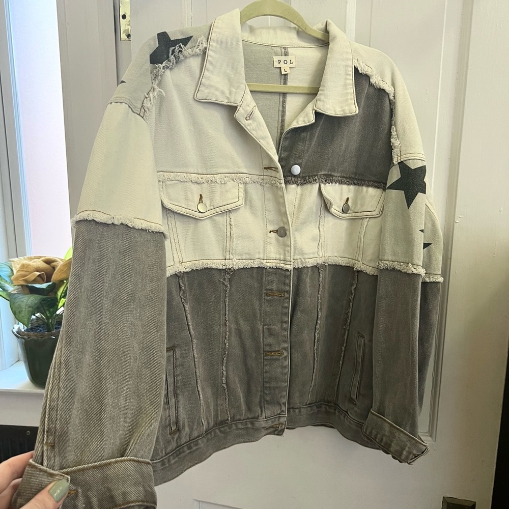 Purchased from a boutique for $65. It’s a size large and fits oversized! Can be worn buttoned up or open. Thick enough material it can be good for chilly days. Offers welcome!