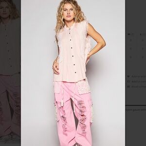 POL “ Madison 2 ” POL Sleeveless Rayon & Gauze Top with Lace Detail 35