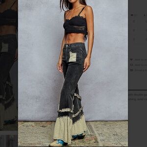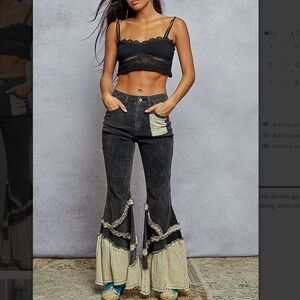 POL “ Marcella 2 “ POL Stretchy Denim Pants with Flared Leg and Gauze Ruffle 44