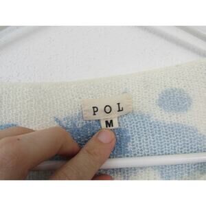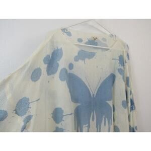 POL Medium Retro Butterfly Lightweight Sweater Wide Neck Oversized White Blue