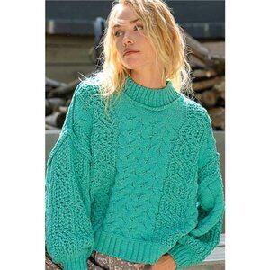 *The mock neck cable knit sweater features a stylish design with a mock neck, long sleeves, and a roomy fit. It is made from chenille fabric and showcases twisted cable knitting detail for a unique and cozy look.