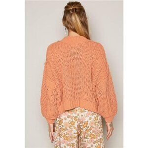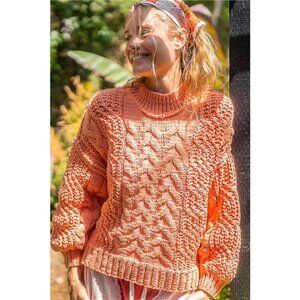 *The mock neck cable knit sweater features a stylish design with a mock neck, long sleeves, and a roomy fit. It is made from chenille fabric and showcases twisted cable knitting detail for a unique and cozy look.