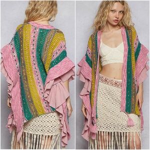 POL Multicolor Crochet Ruffle detail Open Front Cardigan