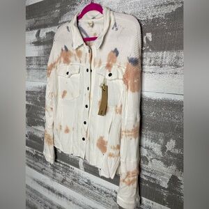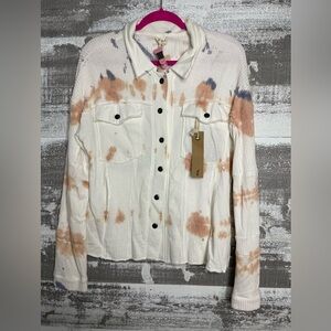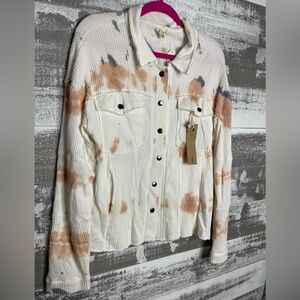 Tye Dye knit shacket with multicolor accents.
