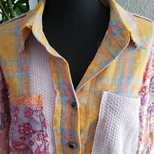 POL Multicolor Patchwork Plaid Shirt Size M