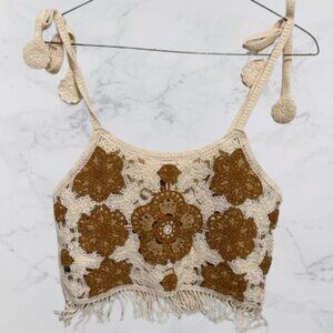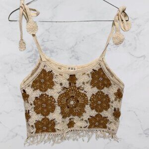 POL NWOT Cami Crochet Fringe Tie Strap Boho Crop Top