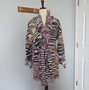 POL NWOT Multicolor Knit Cardigan with Belt & Pochets Southwest Flare S