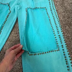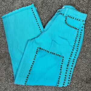 POL NWOT Women's Size Medium 28 Loose Fit Turquoise Cutout Studded Jeans Boho