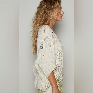 POL Natural Bolero Cardigan Cotton Embroidered Crochet Lace