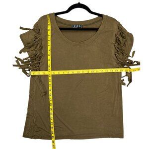 🆕 POL Olive Green Fringe Short Sleeve Jersey Tee Shirt Top Size Small