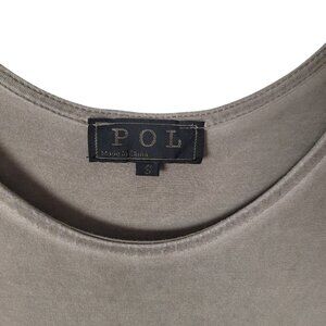 POL Olive Green Gray Boho Long Sleeve Tiered Dress With Pom Pom Trim Hem