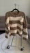 POL Olive and White Cream Striped Distressed Knit Sweater Size Small