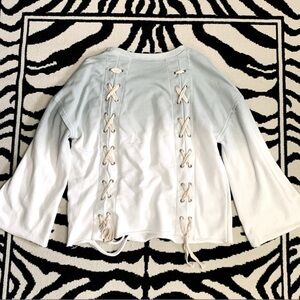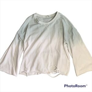 POL Ombré Oversized Distressed Shredded LaceUp Pullover Sweatshirt Size Large