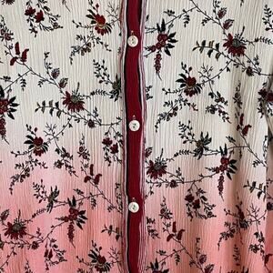 POL Ombre Floral Button Up Blouse Sz M Pink Red Cream Boho Gauze Top Casual