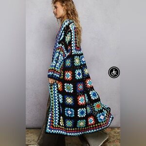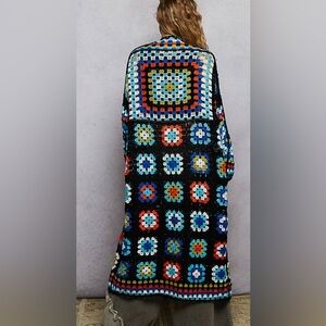 POL One Size Black Multicolor Crochet Cardigan Duster