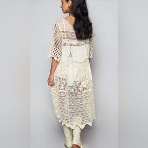 Elegant cream lace dress. Features intricate patterns. Perfect for special occasions.