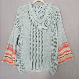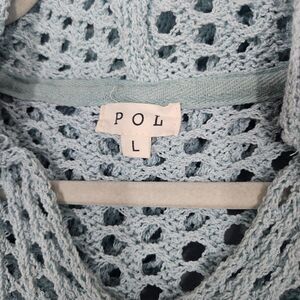 POL Open Knit Beachy Hoodie Size Large Robin Egg Blue Boho Beach Cover