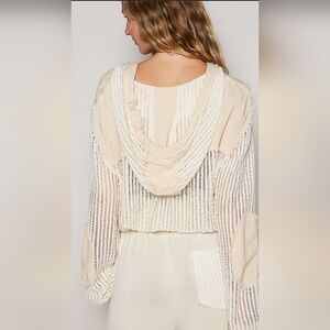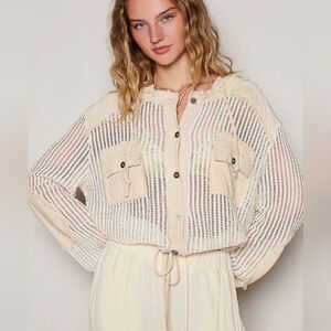 POL Open Knit Contrast Hooded Shacket W/ Hoodie. Sz L NWOT