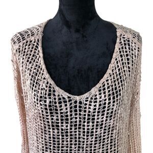 POL Open Knit Crochet Nude Knit Sweater Top Summer Coastal Festival Boho Beach M