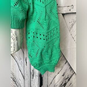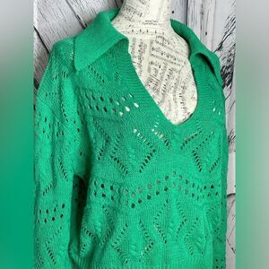 POL Open Knit Long Sleeve Sweater V-Neck Collar Green S
