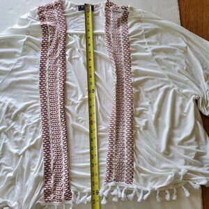 POL Open Tassel Embroidered Lined Cardigan Wide Short Sleeves Large