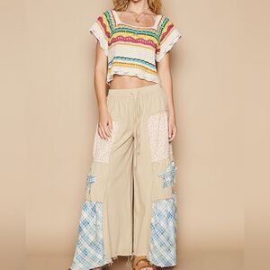 *POL Openwork Ethnic Pattern Square Neck Cropped Knit White Top SZ S M L