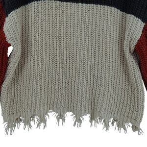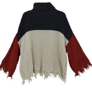- Features: Colorblock, Chunky Knit, Turtleneck, Fringed Hem