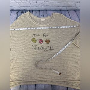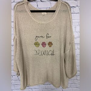 POL Oversize Open Knit Crochet Gone for Brunch Graphic Casual Comfy Sweater M