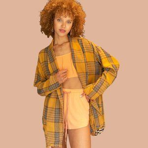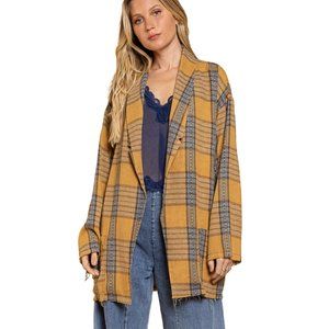 POL Oversized Boho Yellow and Blue Plaid Blazer Jacket