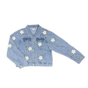 POL Oversized Denim Jacket with Pearl Flower Appliqué Size M