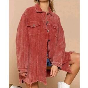 POL Oversized Distressed Rust Corduroy Shacket | Size L