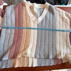 POL Oversized Open-Knit V-Neck Sweater Multi-Color Women’s Medium