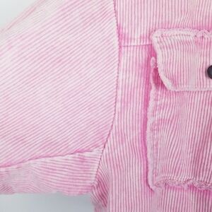 POL Oversized Pink Cropped Corduroy Raw Edge Shacket