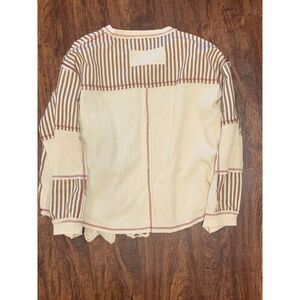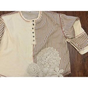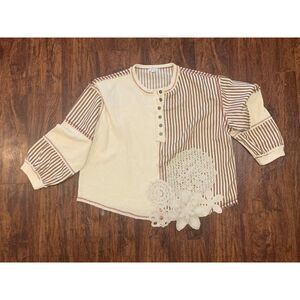 POL Oversized Thermal & Woven Knit Rust & Cream Top w/ Crocheted Details, M