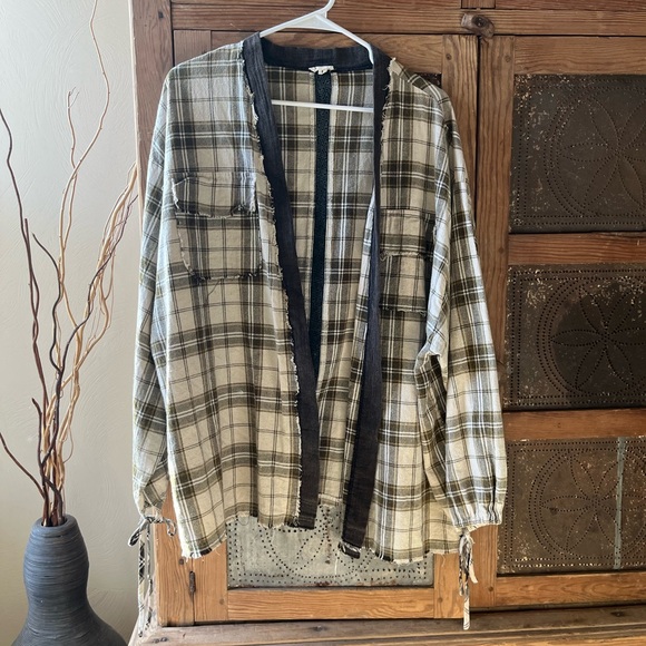 POL Casual plaid shirt jacket. Open front see photos Features CUTE STYLE drawstring cuffs. OVER SIZED FIT !