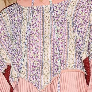 POL Patchwork Floral Sweatshirt, Flare Sleeves, Pink And Purple, New