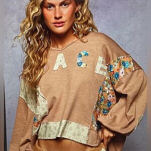 POL Patchwork Peace Sign and Lettering Top