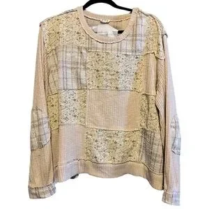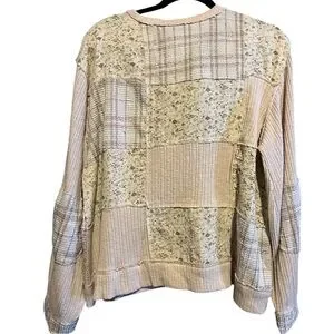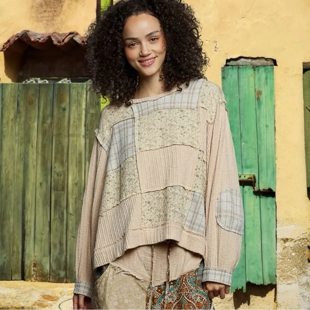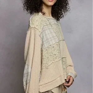 Add a touch of vintage charm to your wardrobe with the POL Patchwork Ribbed Top. Designed in a relaxed, long-sleeve fit, this piece blends cozy ribbed fabric with contrasting plaid and floral panels for a patchwork-inspired look. The round neckline and dropped shoulders give it an easy, laid-back silhouette, while the soft neutral palette makes it versatile for year-round wear.