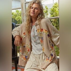 Meet the Peacekeeper Gauze — where laid-back comfort meets boho soul. This long sleeve button-up is crafted from soft, stitched double gauze and finished with a vintage wash for that perfectly lived-in feel. Featuring a peace print patch, subtle embroidery accents, and crochet sleeve detail, it’s full of meaningful texture and effortless charm. Finished with metal buttons, exposed outseam details, and a back patch that adds a final dose of personality.