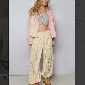 POL “ Pearl “ POL Round Neck Quilted Jacket with Crochet Patchwork Detail 94