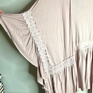 POL Pink Mauve Lace Detail Ruffle Boho Duster Cardigan Shawl Oversized Flowy M/L
