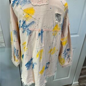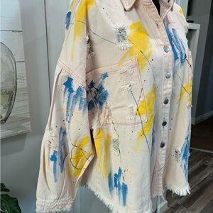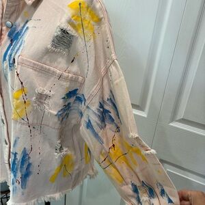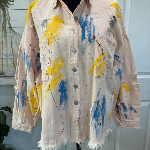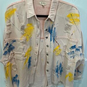 Chic pink jacket by POL. Features a textured distressed design. Perfect for casual wear. Button front with chest pockets. NWOT