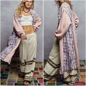 POL Plaid Floral Print Button Down Long Sleeve Jacket Shacket