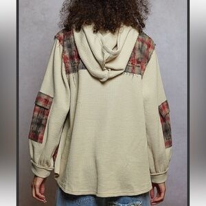 Plaid thermal hoodie featuring intricate floral embroidery. So adorable for the fall/ winter months.