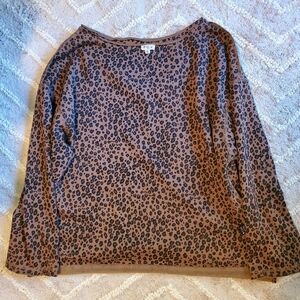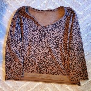 POL Reversable French Terry Leopard V Neck Top