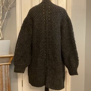 POL Ribbed Cardigan. Open front long length cardigan. long sleeve with ribbed hemline. pocket detail on the body. Size: L. Color: Dark Grey. Measurements: Length 32; Bust: 21". Materials: 70% Polyester, 30% Acrylic. New without tag