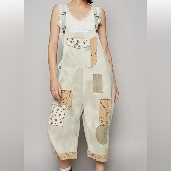 Chic dyed knit patchwork overalls by POL