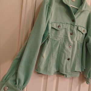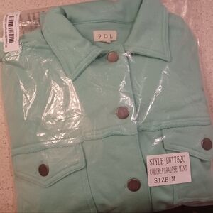 NEW adorable POL button down beautiful teal mint color french terry jacket/shacket with chest pockets size small but runs a bit oversized 🥰