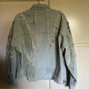 POL Shimmering Jewel Denim Jean Jacket Beaded Distressed Size Large