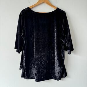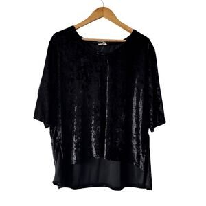 POL Shirt Womens Large Black Crushed Velvet Short Sleeve TShirt Goth Relaxed